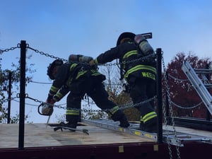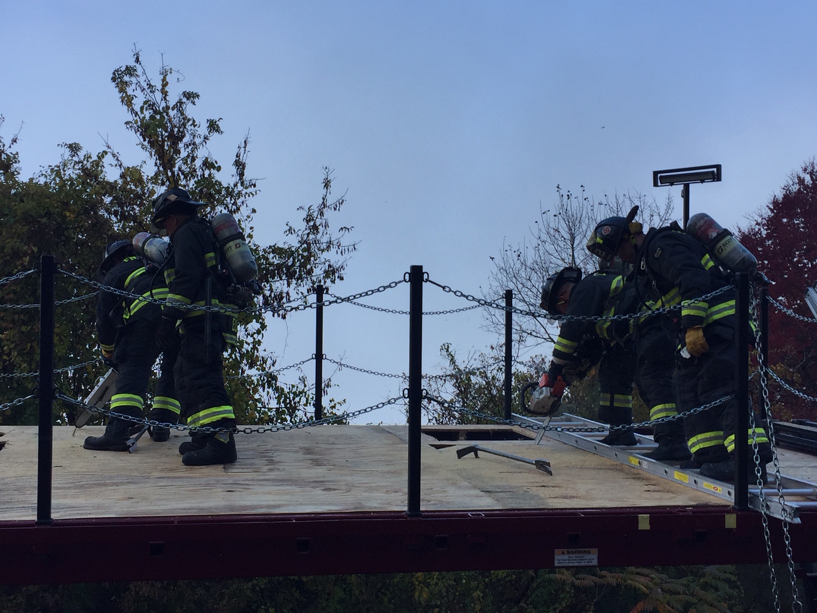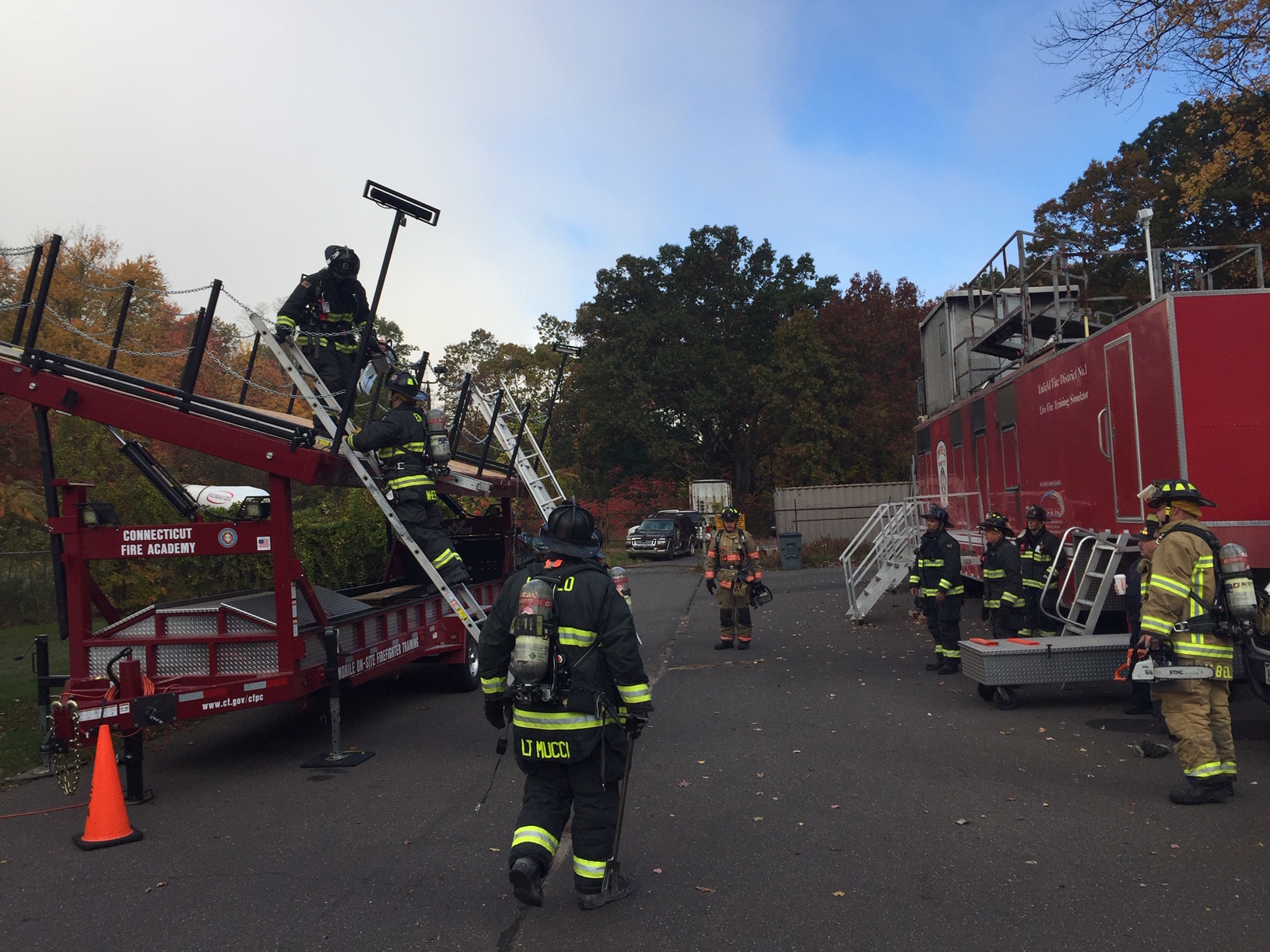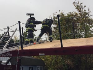 On Friday morning, Oct. 29, Enfield Fire District No. 1 practiced vertical ventilation techniques at Station #2 on the Connecticut Fire Academy’s Ventilation Training Trailer.