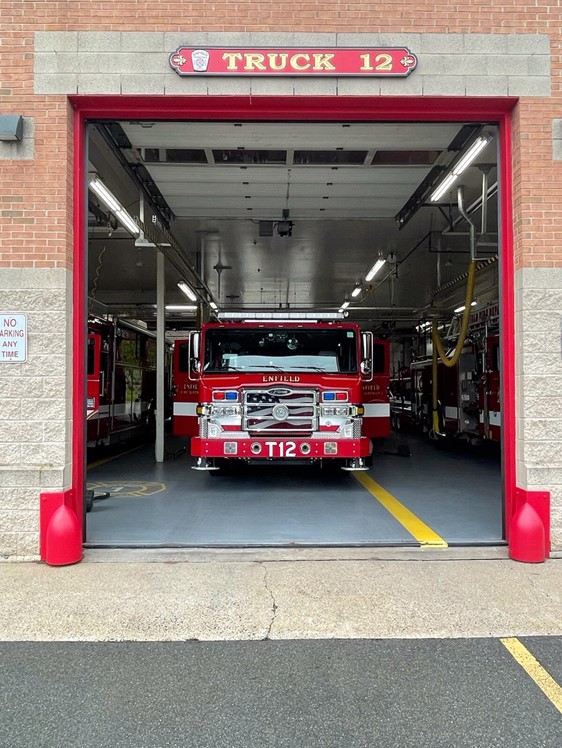 Chief Edward N. Richards is pleased to report that Enfield Fire District No. 1’s new tower ladder, Truck 12, has arrived at the station.