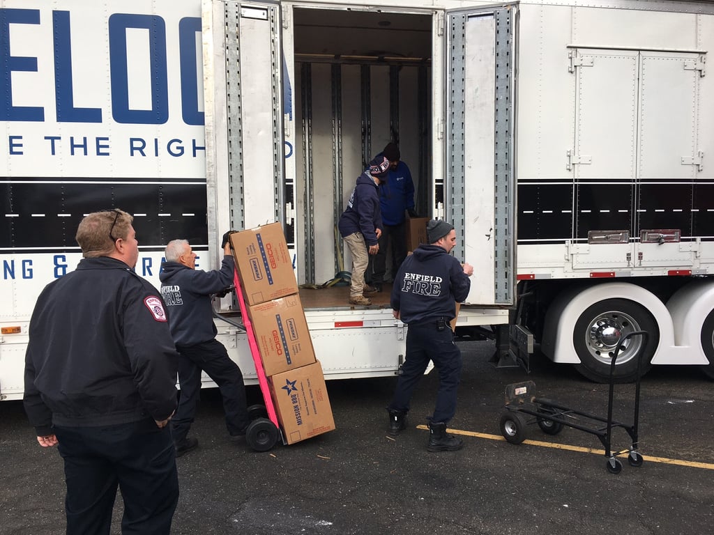Enfield Firefighters Assist in Unloading Wreaths for Wreaths Across America Ceremony